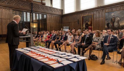 Op vrijdag 26 juni kregen tien trainees overheidsjuristen en evenveel trainees wetgevingsjuristen hun diploma. De uitreiking vond weer plaats in een volle Gotische Zaal van de Raad van State. De rector reikte het getuigschrift met cijferlijst uit aan elke trainee. Drie van hen slaagden met het judicium ‘cum laude’.