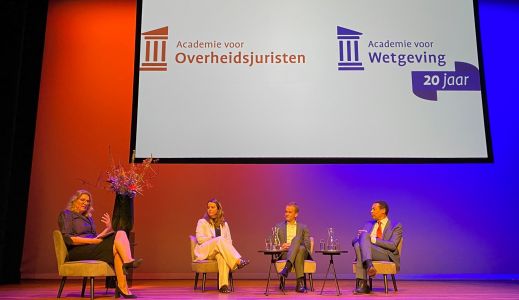 Onder leiding van rector Pauline Schuyt spraken zij op geanimeerde toon over het werk van de jurist in het algemeen en de wetgevings- en overheidsjurist in het bijzonder. Daarbij kwam ook de verhouding tussen juristen en ‘andere collega's', zoals van beleidsafdelingen en financiën aan bod. Alle gesprekspartners benadrukten hoe belangrijk – en leuk! – het is om oog te hebben voor elkaars verschillende perspectieven en belangen, maar ook hoe belangrijk het is om daarbij het juridische kompas niet uit het oog te verliezen. Hoe moeilijk dat soms ook is in een politiek-bestuurlijke omgeving. De boodschap aan de zittende trainees van zowel de minister als Janneke en Pieter was: geniet van je opleiding ‘en doe je best op school'. De kansen die je bij de Academies krijgt zijn uniek, haal eruit wat erin zit!