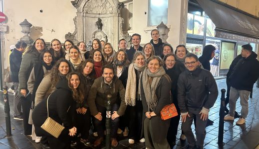 In deze week samen hebben wij echter heus niet alleen kennis opgedaan over het Brusselse. Zo testten wij, samen met de eerstejaars trainees, onze kennis over Amerika. Er kan geconcludeerd worden dat het kennisniveau over dit onderwerp nogal uiteen loopt. Verder werden wij in Brussel getrakteerd op een bierproeverij met diner in een restaurant vlakbij het iconische Manneke Pis. Voor sommigen is het makkelijker om hele arresten uit hun hoofd te leren, dan te onthouden welk gerecht ze hebben besteld. Hierna werden ongegeneerd wat danspasjes uitgewisseld vlakbij, zo bleek pas de volgende dag, de iconische Jeanneke Pis. We leerden tijdens een stadswandeling door Brussel dat ‘rue du Chien Marin’ een nogal lakse vertaling is van de ‘Zeehondstraat’. In het Frans is een zeehond immers een ‘un phoque’. Dat moet je maar net weten. Als afsluiter kregen we de kans lekker te kliederen met chocolade tijdens een chocoladeworkshop, die verrassend stressvol was. Werken met chocolade is, zeg maar, een race tegen de klok.